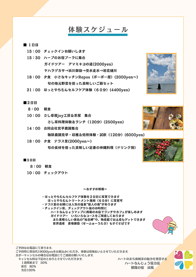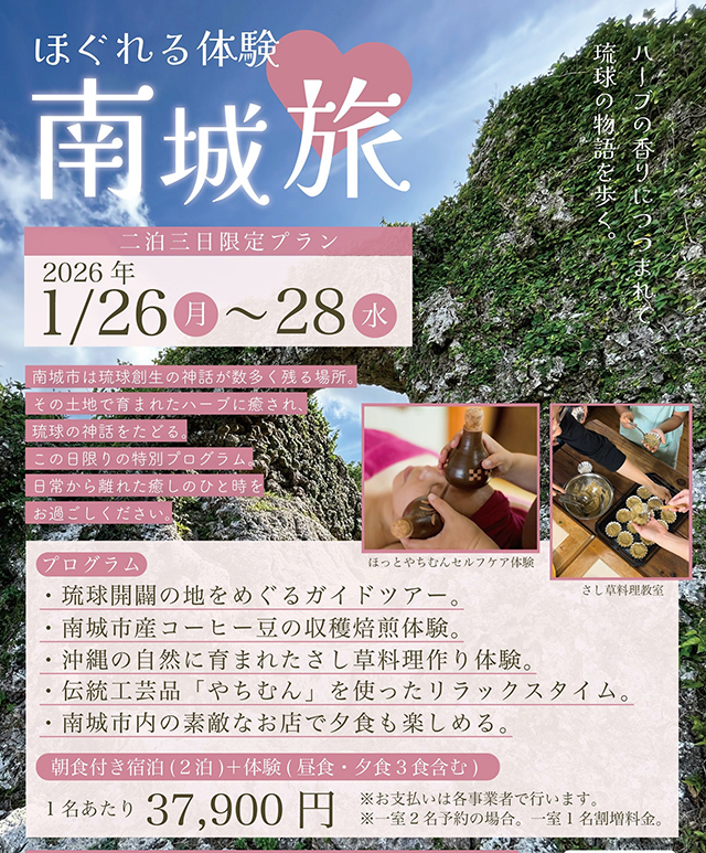 南城市内でさまざまな体験が出来る2泊3日お任せ旅プランをご提案します。